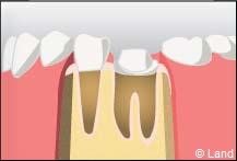 - les couronnes de substitution, ou dents à pivot, qui interviennent lorsque la destruction de la couronne naturelle de la dent est totale, et nécessite d’utiliser le canal radiculaire pour y placer un tenon (ou pivot).